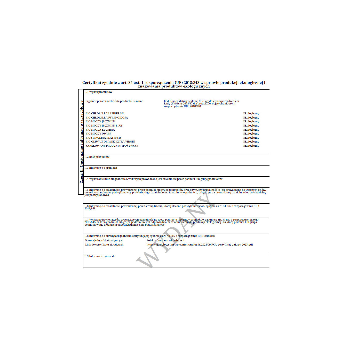 - Produkt posiada certyfikat ekologiczny, który potwierdza jego wysoką jakość i pochodzenie z upraw ekologicznych.