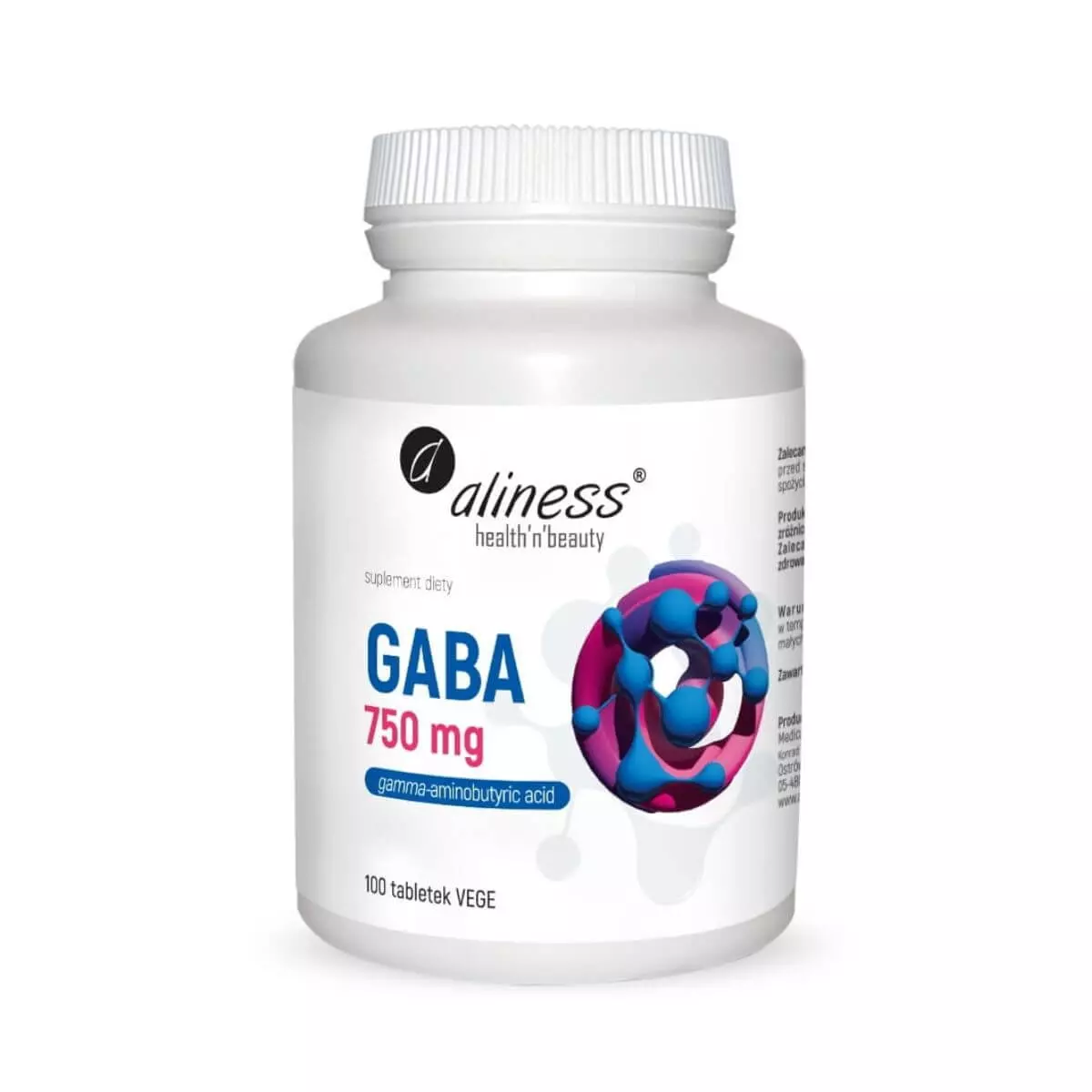 Gaba 750 mg Wysokiej Jakości Kwas Gamma-Aminomasłowy Aliness 100 tabletek