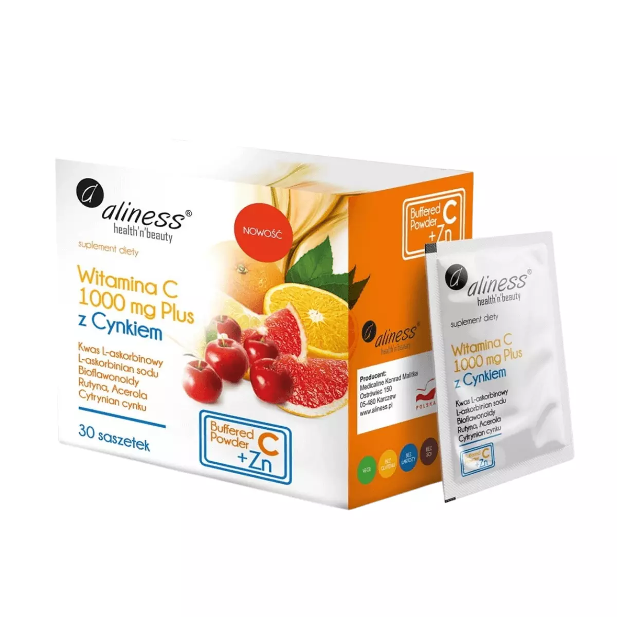 Witamina C 1000 mg z Cynkiem PLUS bioflaw, rutyna, acerola Aliness 30 saszetek