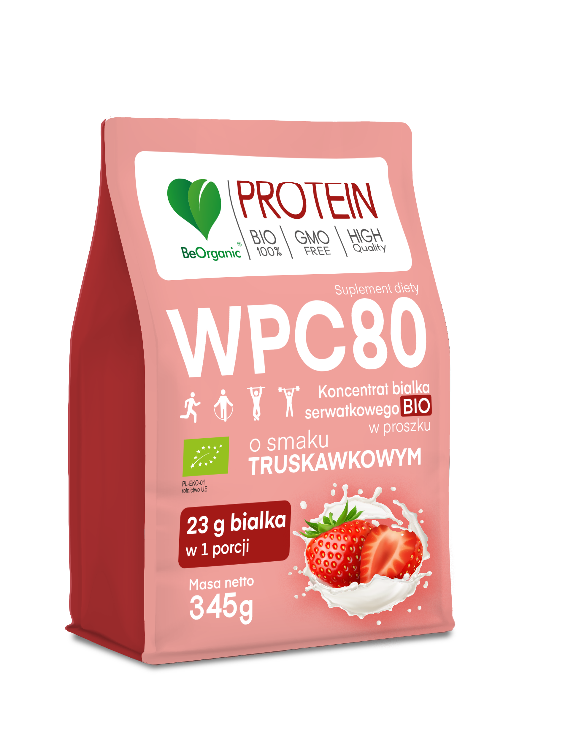 Białko serwatkowe WPC 80 Smak Truskawkowy BIO 345g BeOrganic Aliness