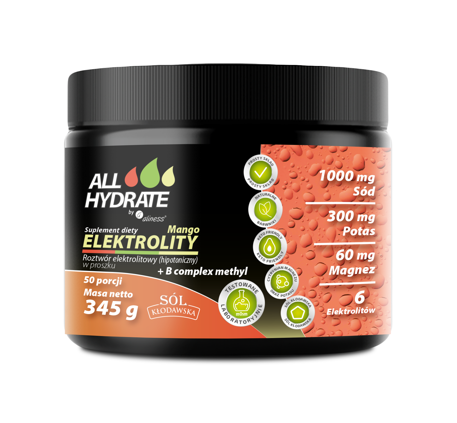 Elektrolity Mango 345 gram Aliness AllHydrate 50 porcji Sól Kłodawska Nawodnienie