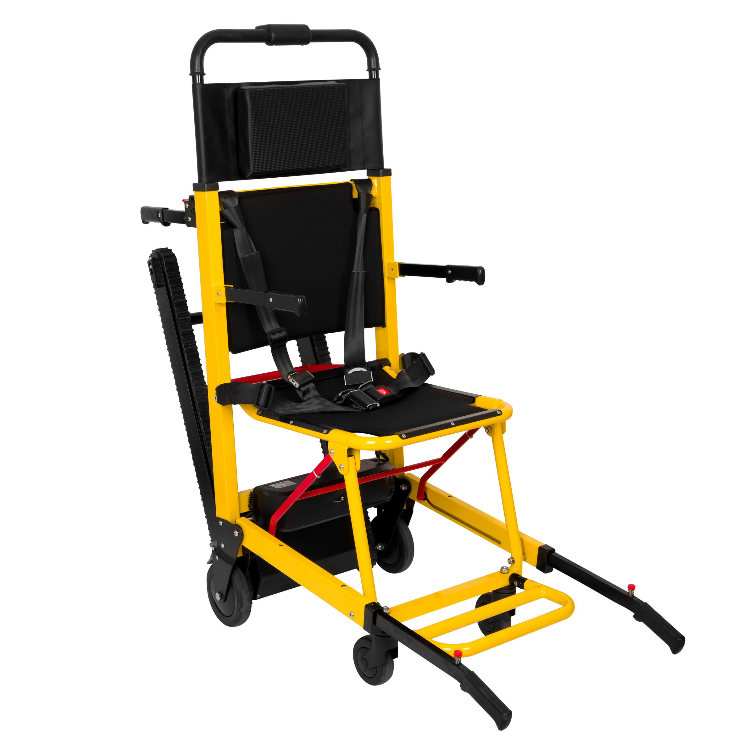 ✅ Stosowany głównie do transportu pacjentów w różnego rodzaju budynkach. Do obsługi schodzenia i wchodzenia po schodach wystarczy jeden operator. Specjalnie zaprojektowane gumowe gąsienice wspomagają transport pacjenta.