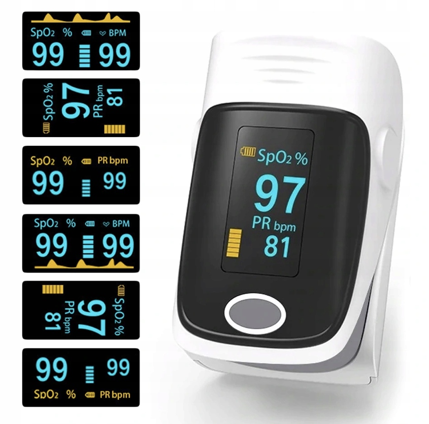 - Pomiar SpO2: 70-99% (dokładność: +/-2%)