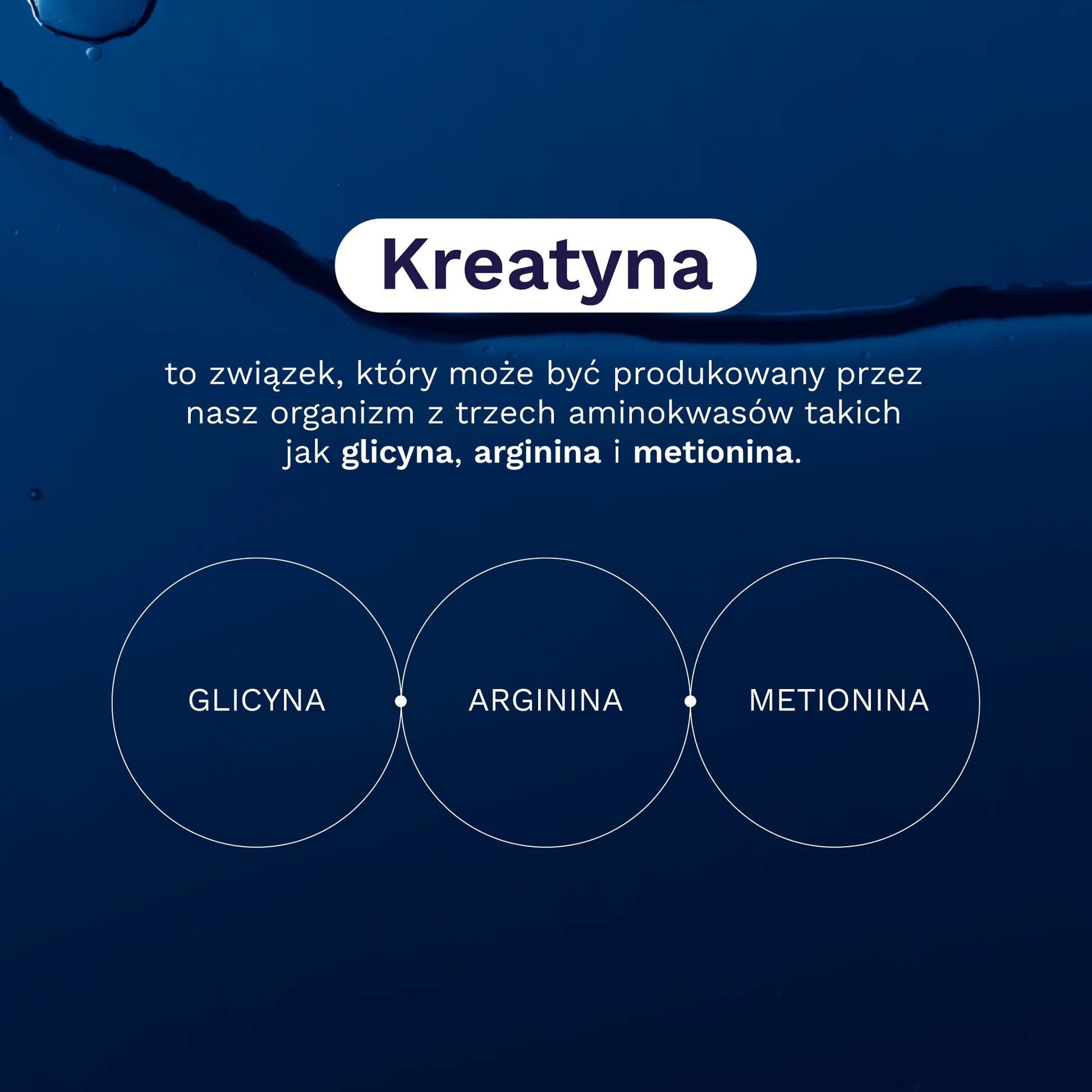 ✅ Kreatyna to związek, który może być produkowany przez nasz organizm z trzech aminokwasów takich jak glicyna, arginina i metionina. Dostarczenie w postaci suplementu diety 3 gramów kreatyny może poprawić możliwości wysiłkowe zwłaszcza w przypadku następujących po sobie krótkich i bardzo intensywnych ćwiczeń. Głównie z tego względu kreatyna cieszy się bardzo dużą popularnością wśród osób aktywnych fizycznie i sportowców.
