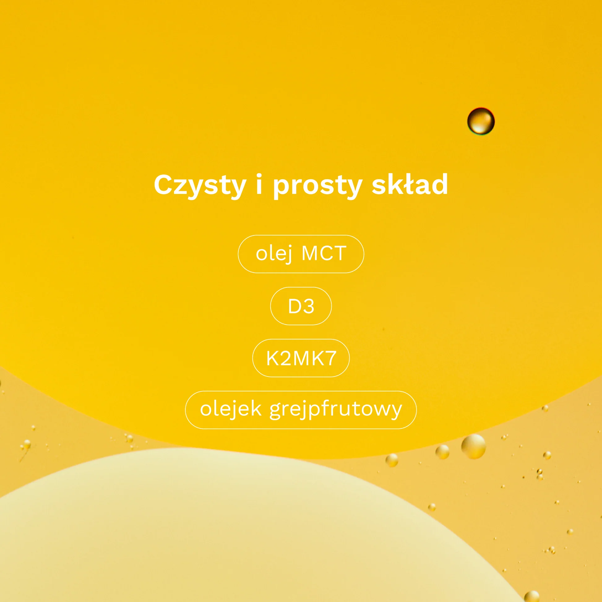 Składniki: olej MCT, witamina K2MK7 (menachinon-7), witamina D3 (cholekalcyferol), olejek grejpfrutowy.