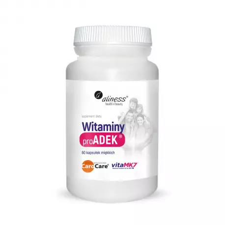✅ ProADEK® Aliness dostarcza organizmowi naturalnych form witamin A (BetaKaroten CaroCare®), D3 (Cholekalcyferol), E (D-alfa tokoferol), oraz K2 (VitaMK7® menachinon-7).
